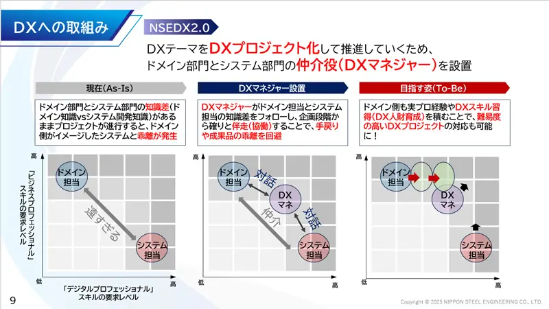 日鉄エンジニアリングのDXへの取り組み。現在は「NSEDX2.0」の「変革」フェーズ